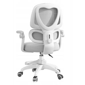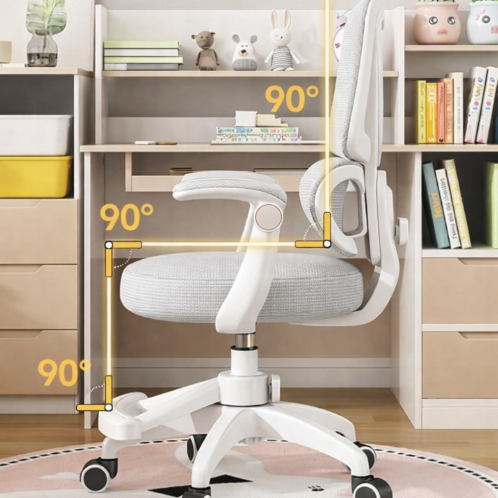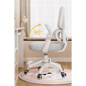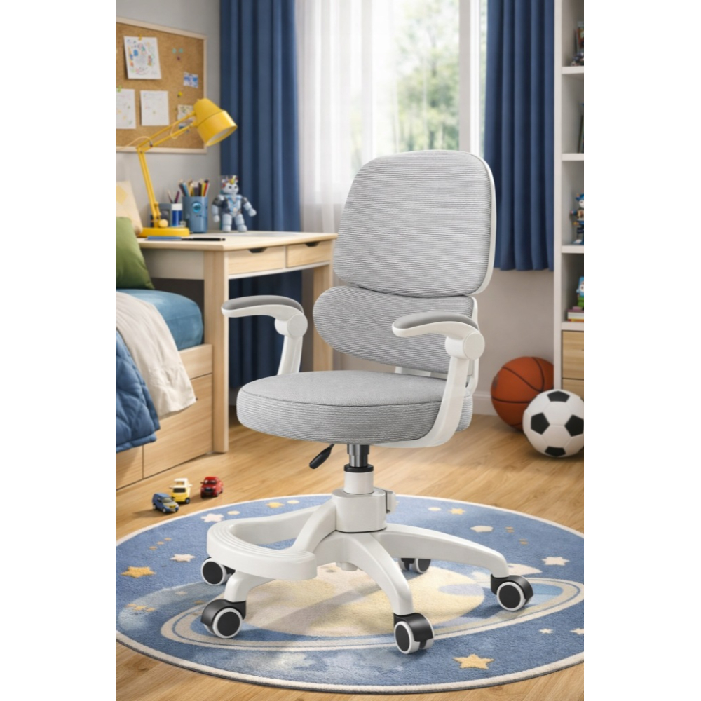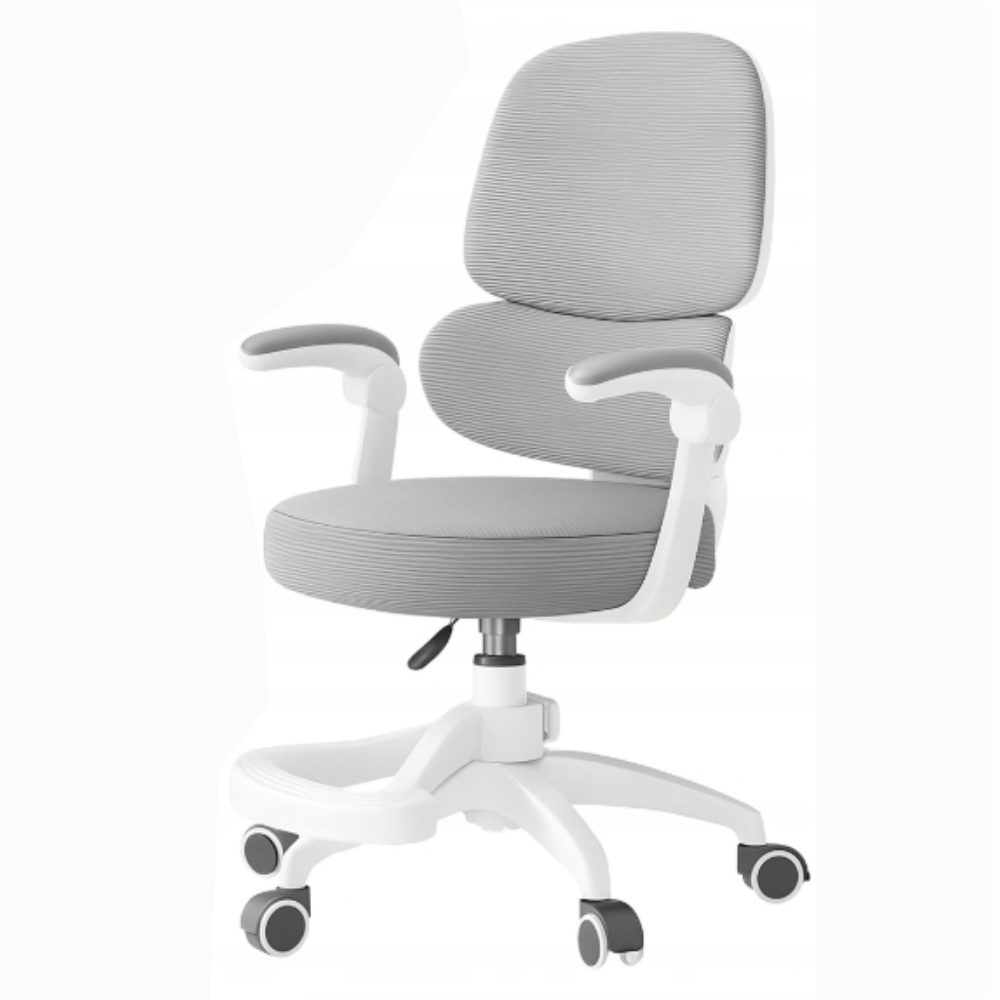 Miękkie, trójwarstwowe siedzisko z elastycznej pianki gwarantuje wygodę nawet podczas długiej nauki, a przewiewne oparcie z siatki dba o odpowiednią cyrkulację powietrza i zapobiega przegrzewaniu. Składane podłokietniki umożliwiają wsunięcie fotela pod biurko, co pozwala zaoszczędzić miejsce w pokoju.