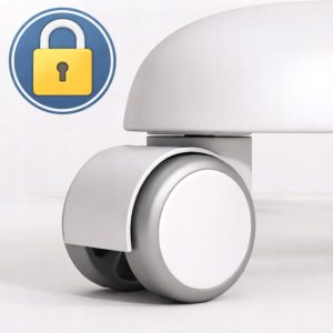 Fotel wyposażono w ciche kółka z funkcją blokady – po zajęciu miejsca przez dziecko automatycznie się zatrzymują, zwiększając bezpieczeństwo i stabilność. Solidna konstrukcja o wytrzymałości do 100 kg oraz certyfikaty SGS i BIFMA gwarantują trwałość i niezawodność.